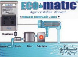 La más innovadora alternativa natural para evitar el uso de productos químicos en el agua de su piscina o hidromasaje, es la nueva línea Eco-Matic. Sistema